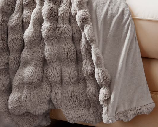 Rib Rabbit Fur Plaid Taupe/Gijs 150 x 200
