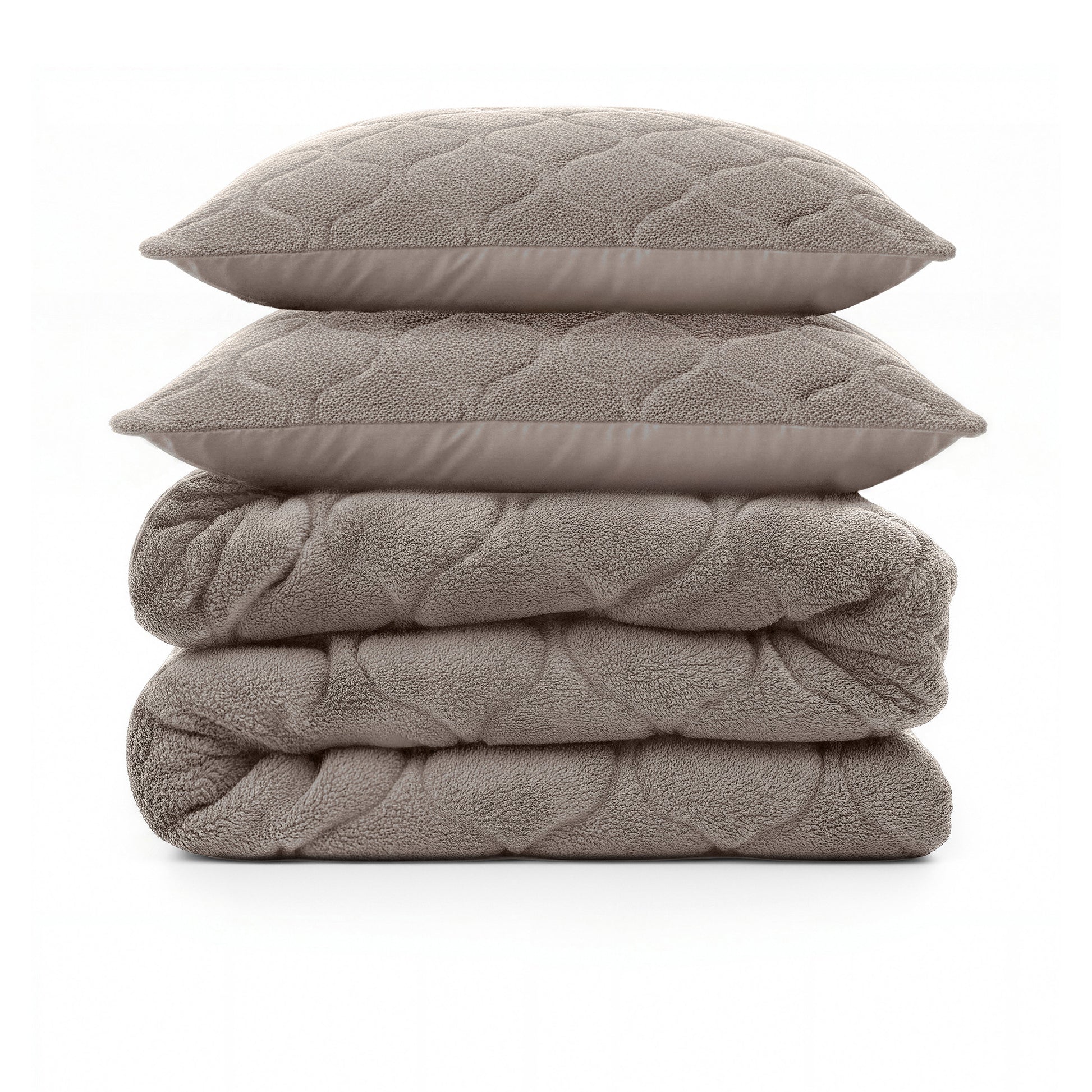 Lazy Dekbed Teddy Taupe/Grijs 240 x 200 Met Luxe Kussenslopen