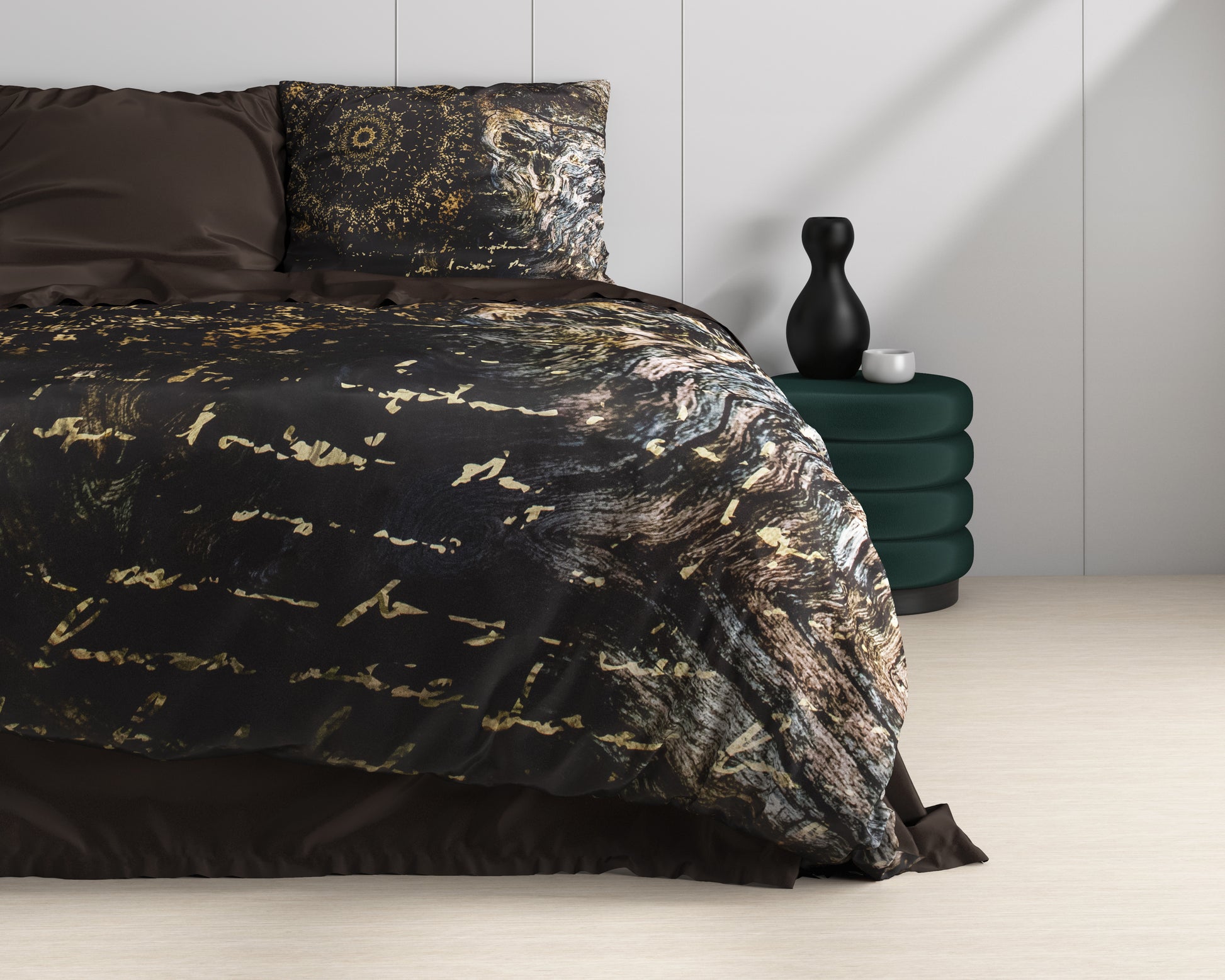 Onder dit zacht en trendy Dreamhouse Wild Romero-dekbedovertrek is het altijd heel fijn slapen. Hierop is een donkergekleurde print te zien met verschillende bruintinten die elkaar afwisselen. Ook zie je een grote mandala vorm, opvallende elementen en een vervaagde tekst in een goudkleurige tint aan de onderzijde. De achterkant is effen donkerbruin en sluit goed aan op de voorzijde. Het dekbedovertrek heeft een totale lengte van 240 cm en kan afgesloten worden met de handige drukknopen.