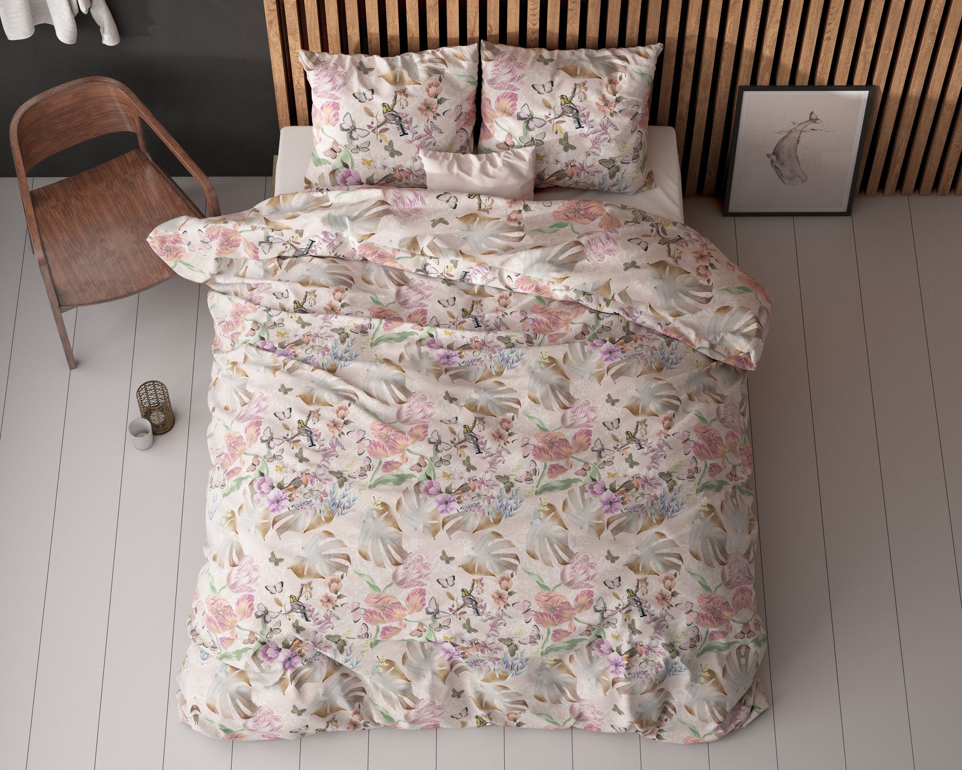 Met een draaddichtheid van T128 biedt dit beddengoed niet alleen een luxueus gevoel, maar ook een garantie voor een goede nachtrust. De rotatieprint voegt een vleugje verfijning toe aan je slaapkamerdecor, terwijl de extra lange instopstrook met drukknopen ervoor zorgt dat je dekbed op zijn plaats blijft voor een ongestoorde slaap.